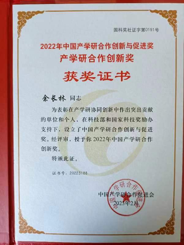 近日,中国产学研合作促进会公布了“2022年中国产学研合作创新与促进奖”评选结果,化工学院余长林教授荣获“2022年中国产学研合作创新奖(个人)”。