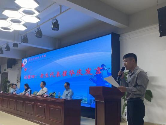 老生代表化卓21-1班崔华庆同学从他难忘的军营羁旅出发,鼓励同学们要能吃苦、坚持运动、培养强有力的贯彻执行力。正确选择自身的发展方向与前进道路,实现自己的人生价值。
