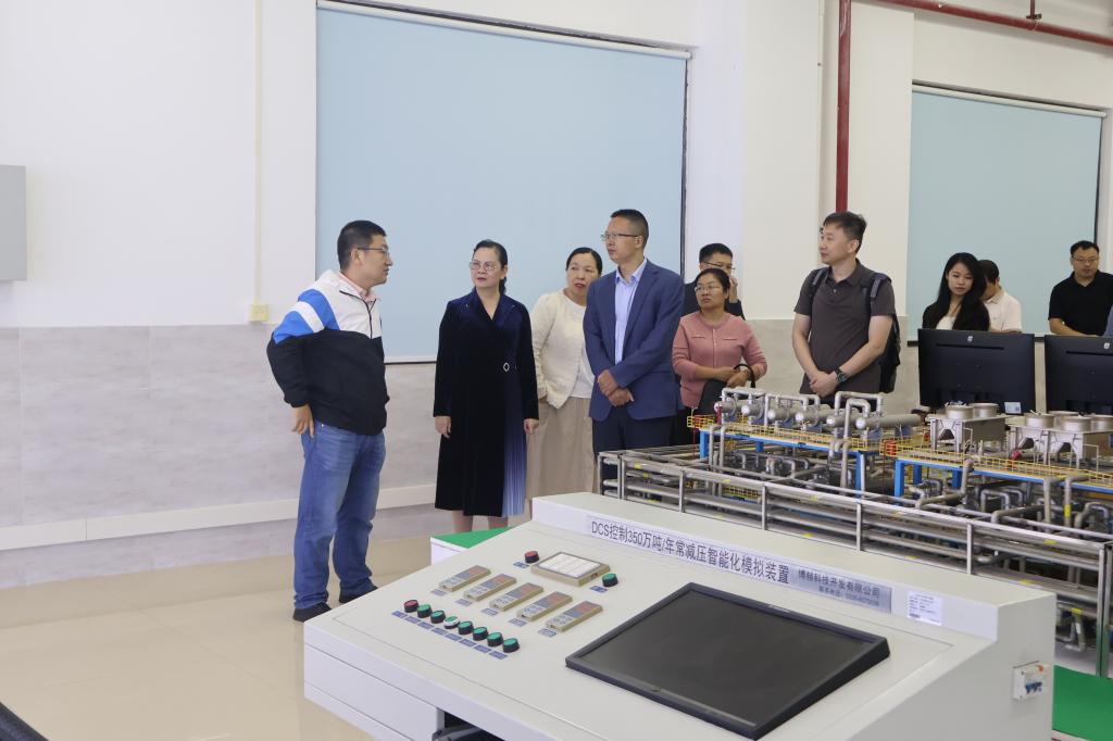 学校教务部部长刘美与院长余长林等陪同兰翠玲一行参观了广油-瑞派创新设计产业学院、仿真实训平台、裂解实验室等实训平台。参观过程中,孟秀红简要介绍化工学院和化工学科的发展情况。随后,双方就学科专业建设与发展、人才培养、产业学院建设等方面展开交流。