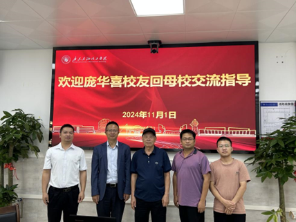 11月1日下午,化学工程学院化7201班校友庞华喜返校交流指导,学院院长余长林热情接待,并代表学院对其返校表示热烈的欢迎。