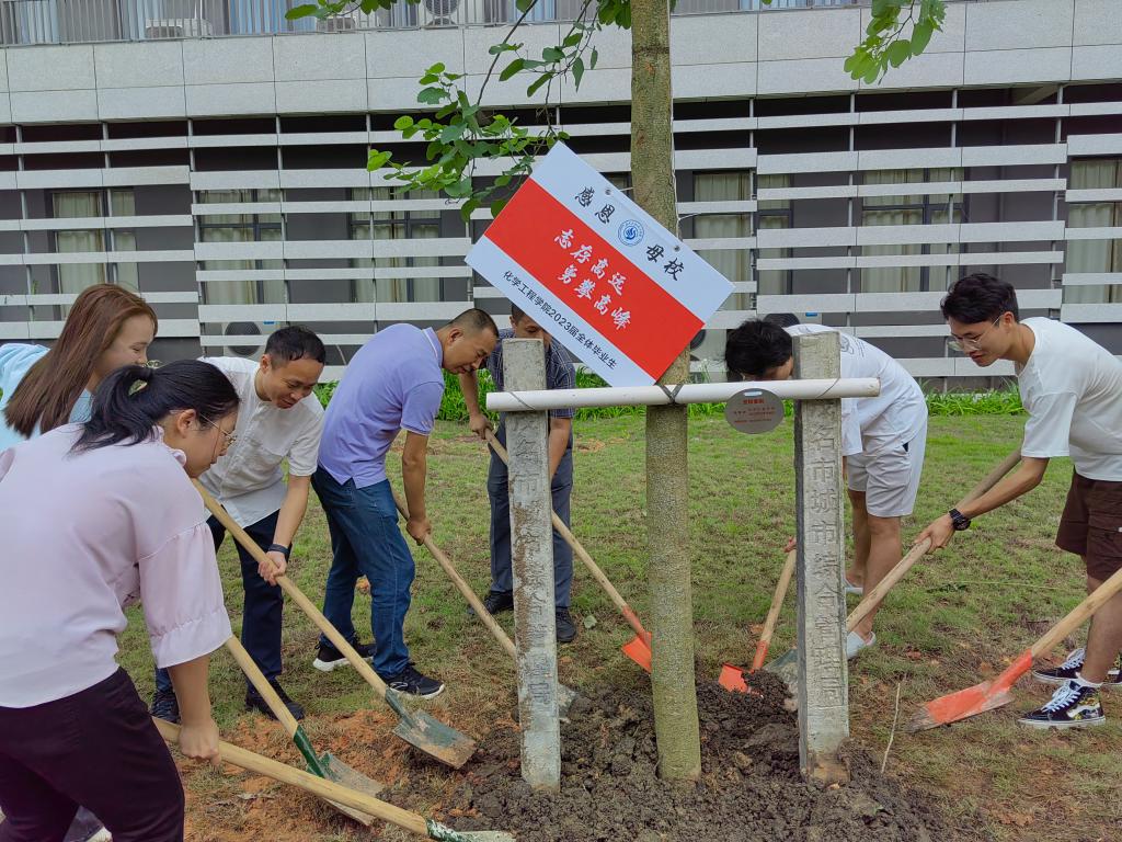 6月16日上午,化学工程学院党委副书记纪玉刚、辅导员陈海均、黄清意、梁明珠、班主任林存辉及2023届毕业生代表参加了学校组织的“感恩学校 植树传情”毕业季植树活动。