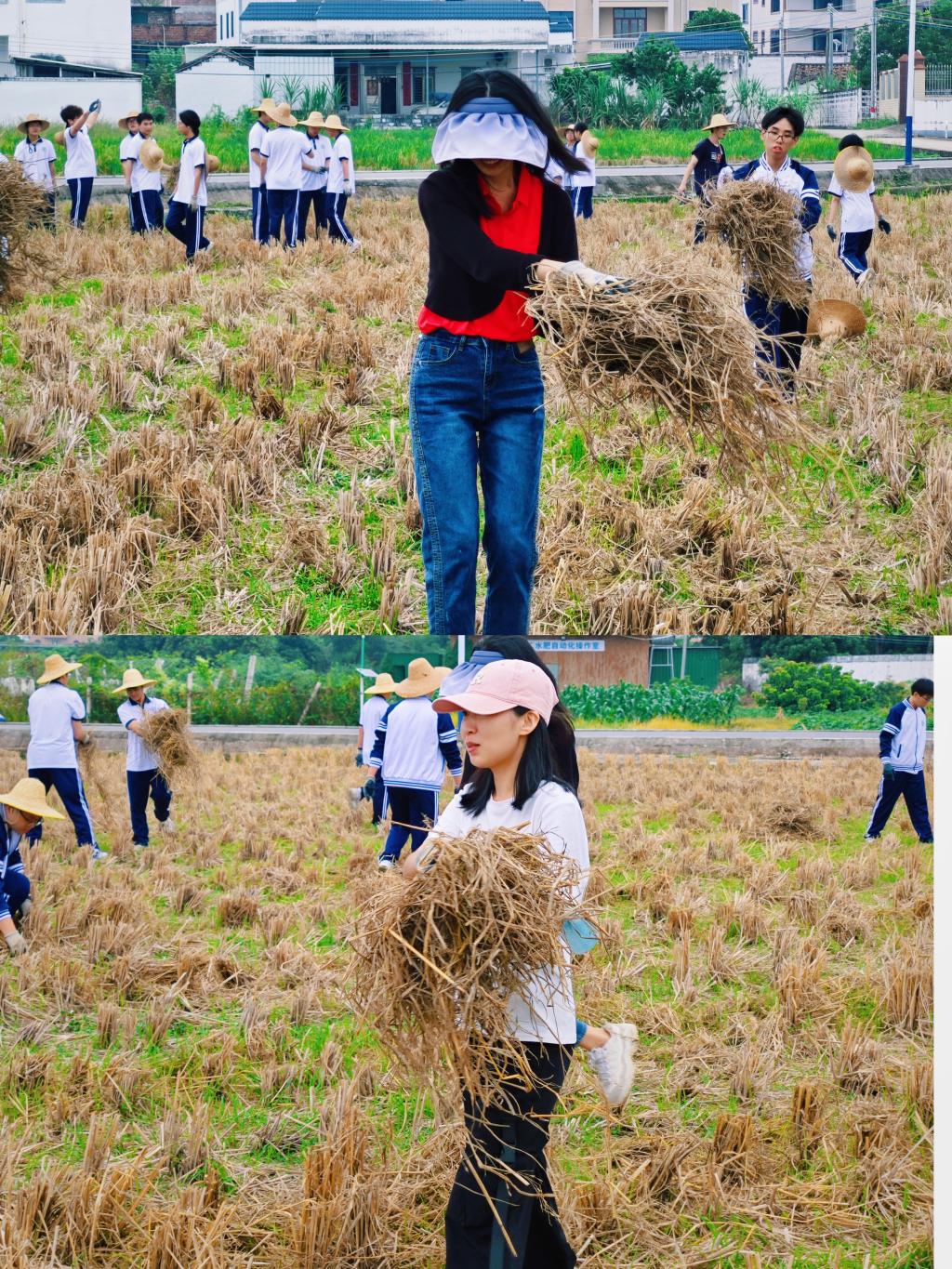 在凉爽的秋意中,同学们齐心协力,不畏艰辛,迅速将秸秆运往指定地点。欢声笑语与劳作声交织,形成了一幅生动的青春劳动画卷,展现了化工学子对母校的热爱与责任担当。