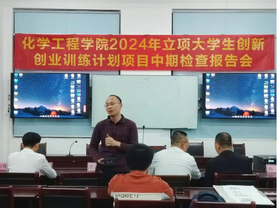 4月16日晚,化学工程学院在化工楼C104举行了2024年立项大学生创新创业训练计划项目中期检查报告会。化工学院党委副书记纪玉刚、副院长曾兴业、双创学院副院长孙健、能工系主任张尤华、石油化工系主任杨冲、化工实验与实训中心副主任林存辉及各项目成员参加本次活动。