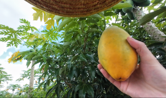 家人们看过来!这是我们清甜的木瓜!”直播镜头前,队员化身“农产品推荐官”,不只是简单带货,更想带大家“云游”农场:摸一摸刚摘下的木瓜表皮的温润,听队员讲述每一颗成熟果实背后的生态培育理念。采摘的乐趣、农场的风光,都通过镜头传递给屏幕前的观众,让“买农产”变成“识农趣”,更悄悄埋下一颗“农文融合”的种子。