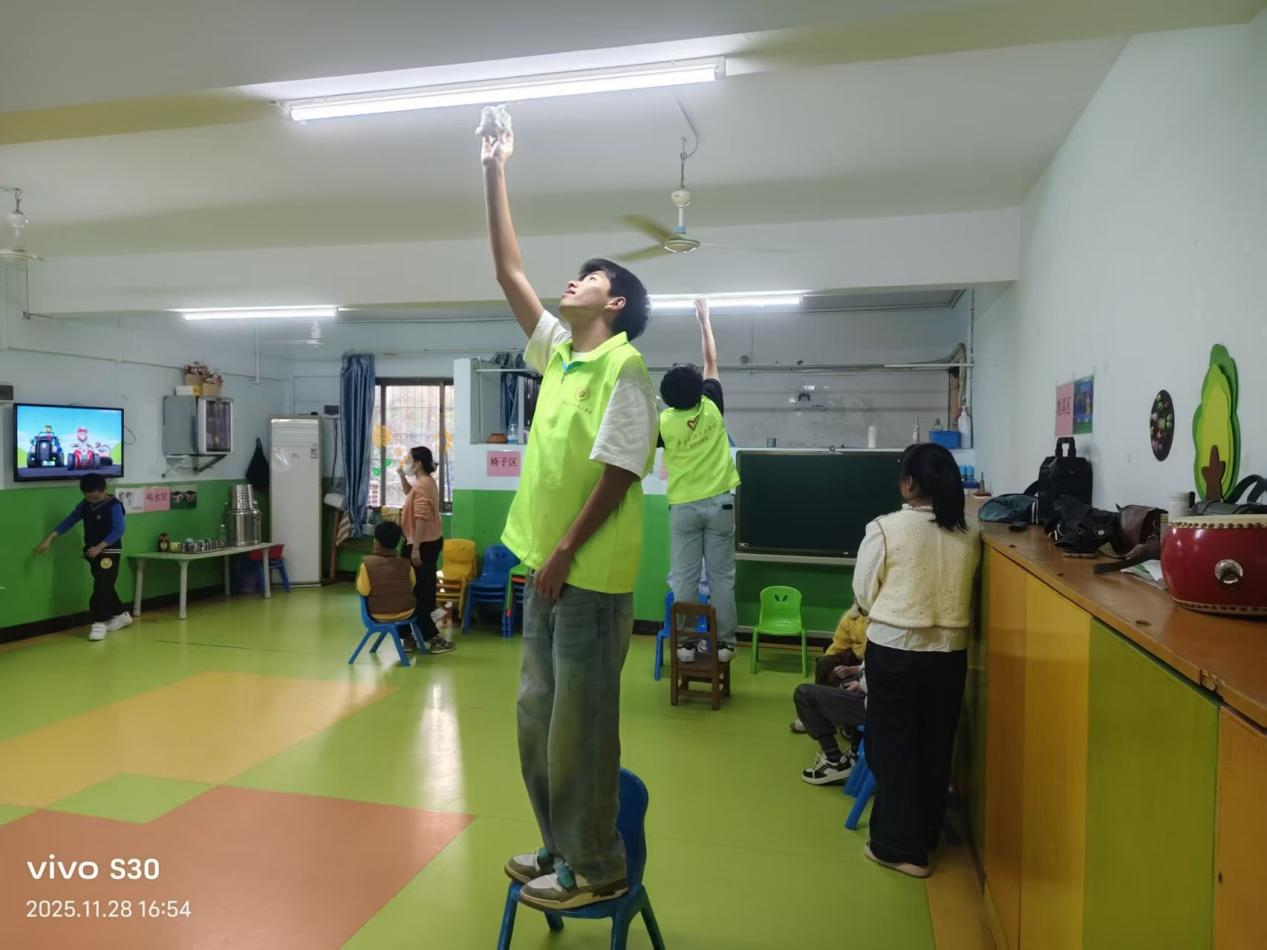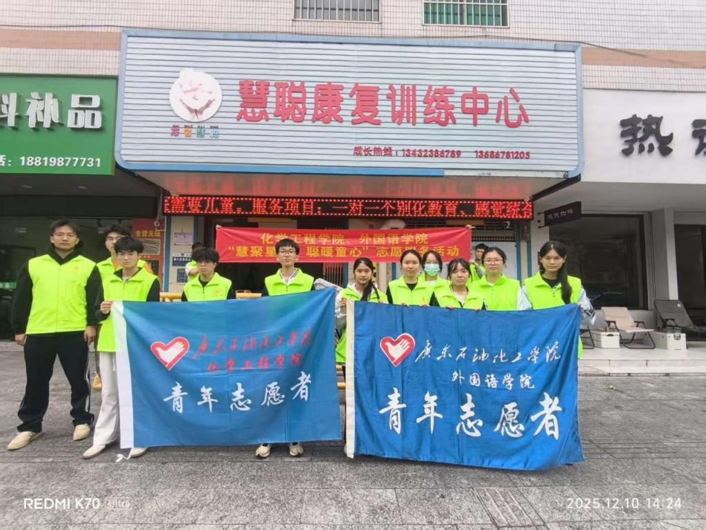 每颗星星都有其独特的轨迹,每一个孩子也拥有与世界对话的独特方式。为传递“尊重、包容、平等”的融合教育理念,以实际行动关爱自闭症儿童,2025年11月17日至12月12日,Beat365中文官方网站组织开展了“慧聚星光,聪暖童心”志愿服务活动。来自化学工程学院与外国语学院的135名志愿者分批走进茂名市慧聪康复训练中心,通过持续的陪伴与细致的协助,为孩子们带去了温暖与支持,也为康复教育注入了青春活力。