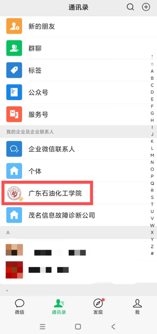 2.点击通讯录,选择我的企业“Beat365中文官方网站”。