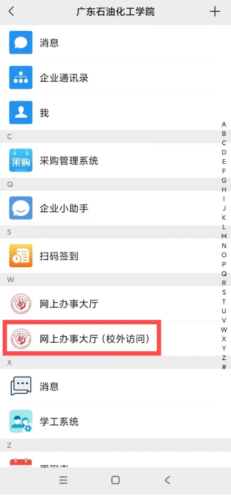 3.校外用户选择“网上办事大厅(校外访问)”,校内用户选择“网上办事大厅”。